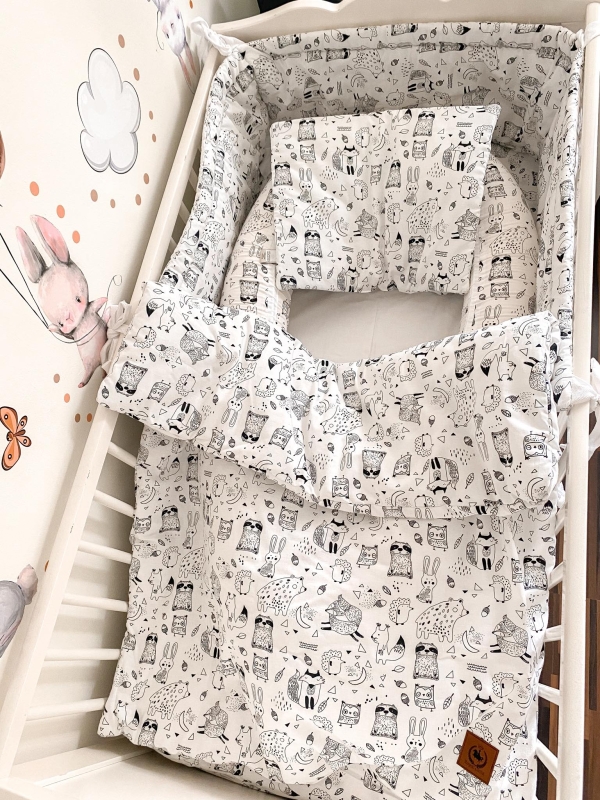 Pościel z wypełnieniem 75x100 z poduszką czarno białe wzory
